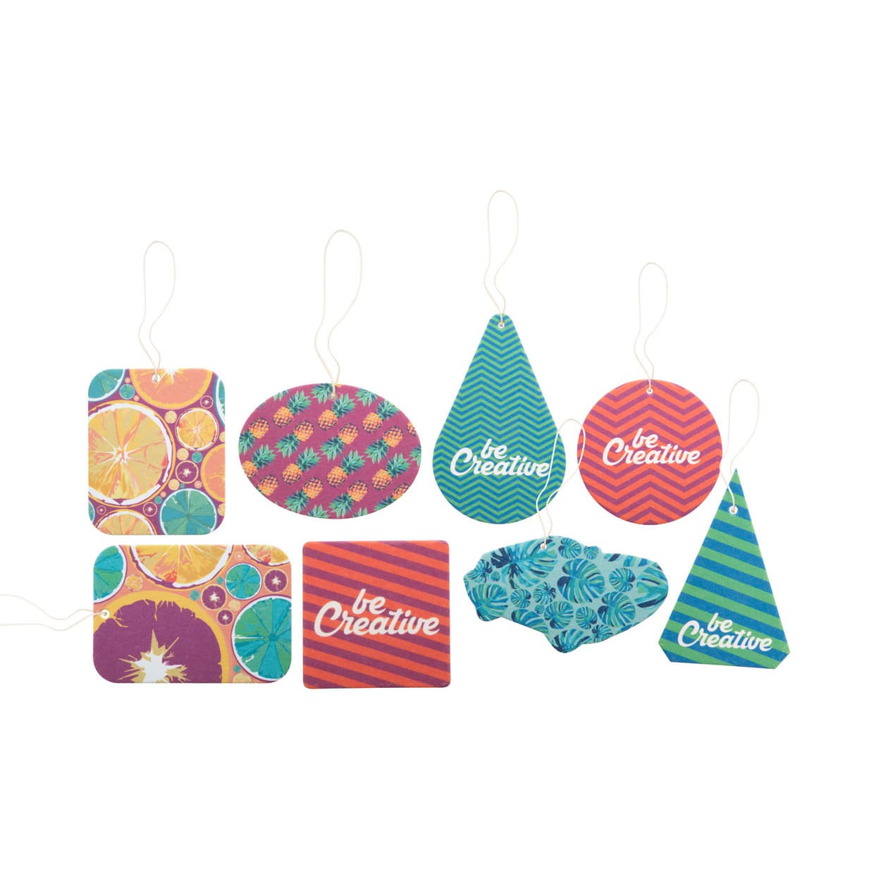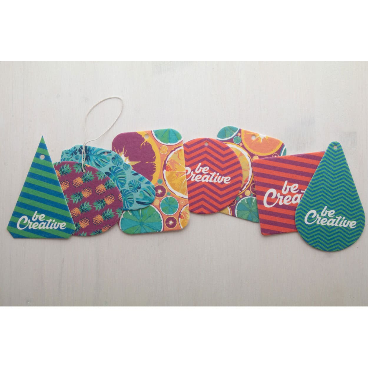 Il deodorante per auto personalizzabile è il gadget ideale per valorizzare il tuo brand con un profumo distintivo e una presenza costante nella quotidianità dei tuoi clienti. Disponibile in diverse forme e con fragranze ispirate alla natura – come vaniglia, limone, oceano o mela verde – questo articolo unisce utilità e comunicazione visiva. Stampato a colori su entrambi i lati, è perfetto per fiere, promozioni stagionali, campagne di promozione aziendale o distribuzioni ad ampio raggio.