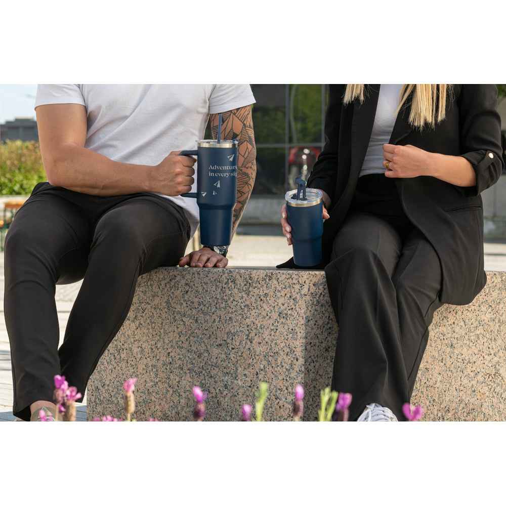 Tazza da viaggio da 600 ml in acciaio inossidabile riciclato al 91%, con doppia parete isolata sottovuoto che mantiene la temperatura delle bevande. Design compatto, finitura opaca ed elegante, ideale per l’uso quotidiano in ufficio, durante gli spostamenti o attività outdoor. Dimensioni: ø86×168 mm. È una tazza personalizzabile pensata per aziende che desiderano un gadget sostenibile e funzionale da inserire in campagne promozionali, welcome kit o regali corporate. Robusta, riutilizzabile e a basso impatto ambientale, rappresenta un’ottima scelta per comunicare attenzione all’ambiente e al benessere del cliente, offrendo al tempo stesso visibilità continua al brand.